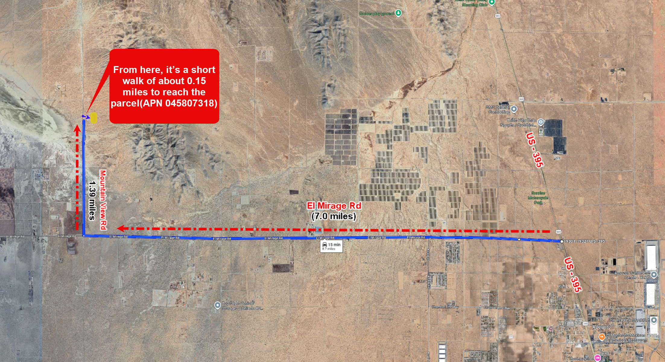 Start at US-395. Take El Mirage Rd West for about 7 miles.