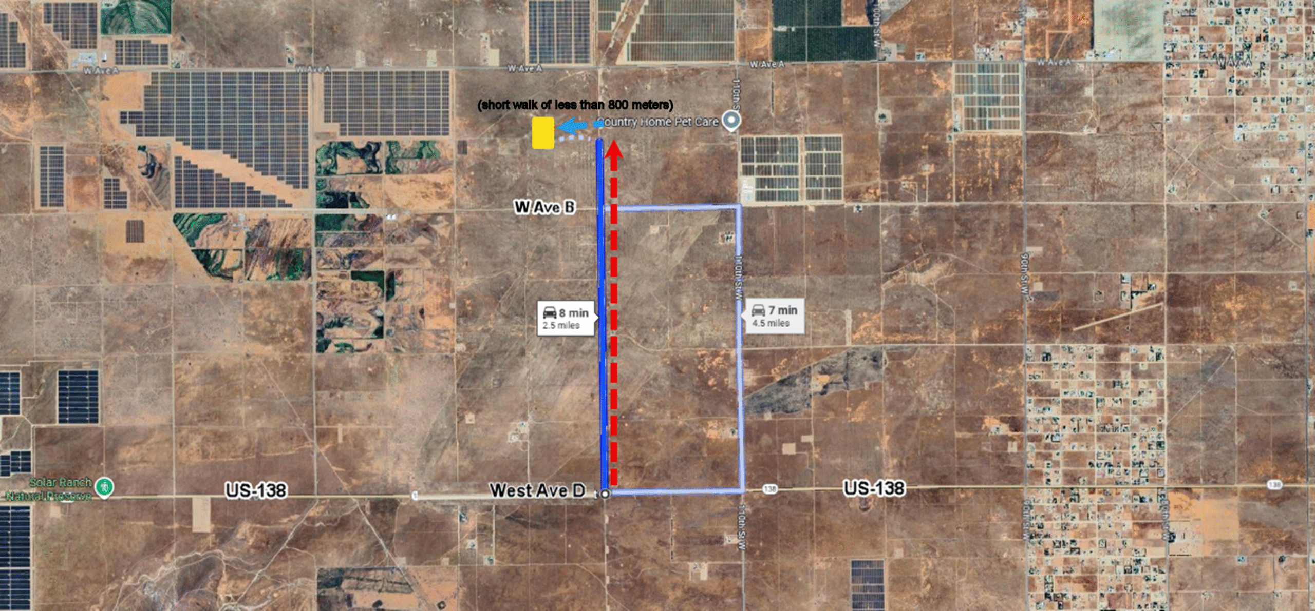 – Driving on US-138 (W Ave D) turn North on 120th St W.